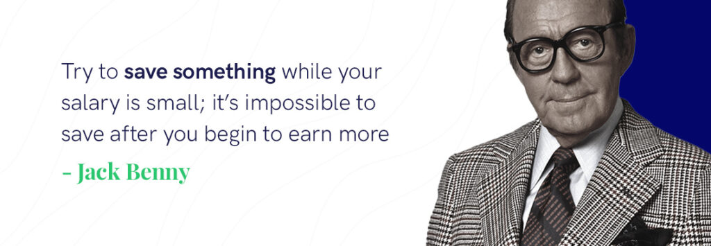 The danger of postponing saving till a later time is that there might be nothing left to save by the time you are ready to save. Like Jack Benny, the American entertainer once said, “Try to save something while your salary is small; it’s impossible to save after you begin to earn more.”